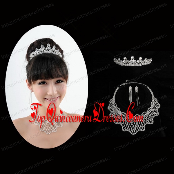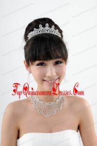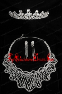 Unique Meshed Necklace And Earrings Jewelry Set Made by Crystal