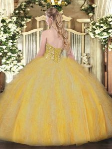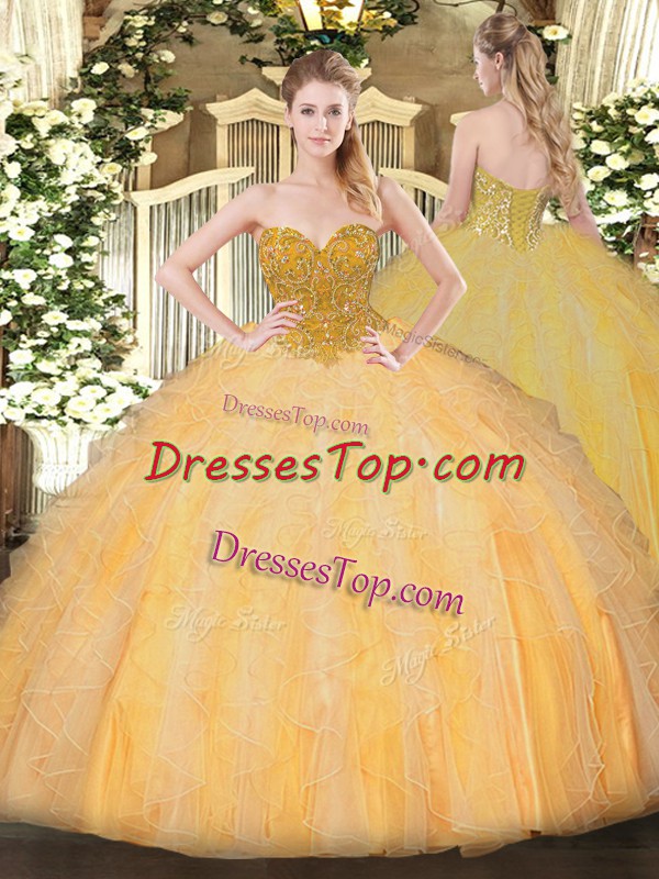 Unique Orange Organza Lace Up Quinceanera Dress Sleeveless Floor Length Beading and Ruffles