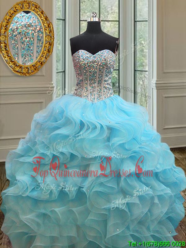 Unique Organza Sweetheart Sleeveless Lace Up Beading and Ruffles Sweet 16 Dresses in Baby Blue