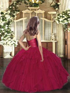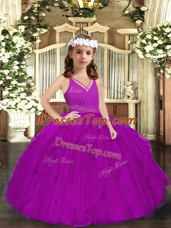 Unique Purple Tulle Zipper Kids Formal Wear Sleeveless Floor Length Ruffles