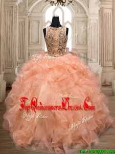 Unique Scoop Orange Sweet 16 Dress with Beading and Ruffles
