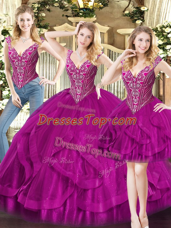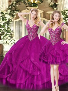 Unique Sleeveless Beading and Ruffles Lace Up Sweet 16 Quinceanera Dress