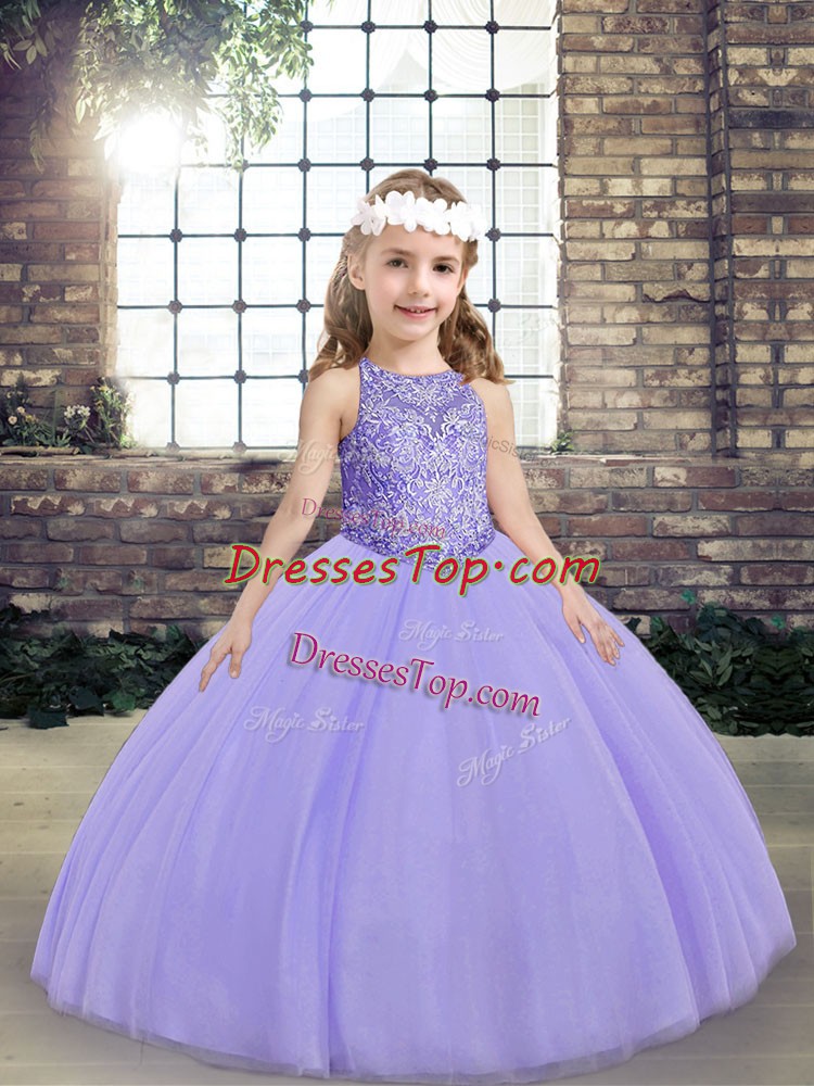 Unique Sleeveless Beading Lace Up Little Girl Pageant Dress