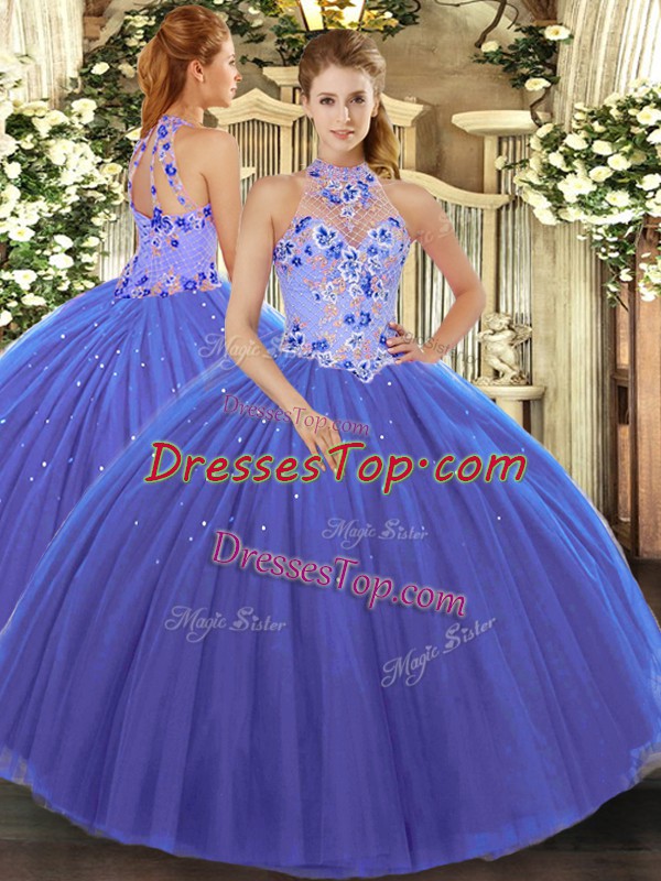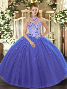 Unique Sleeveless Embroidery Lace Up Quinceanera Gown