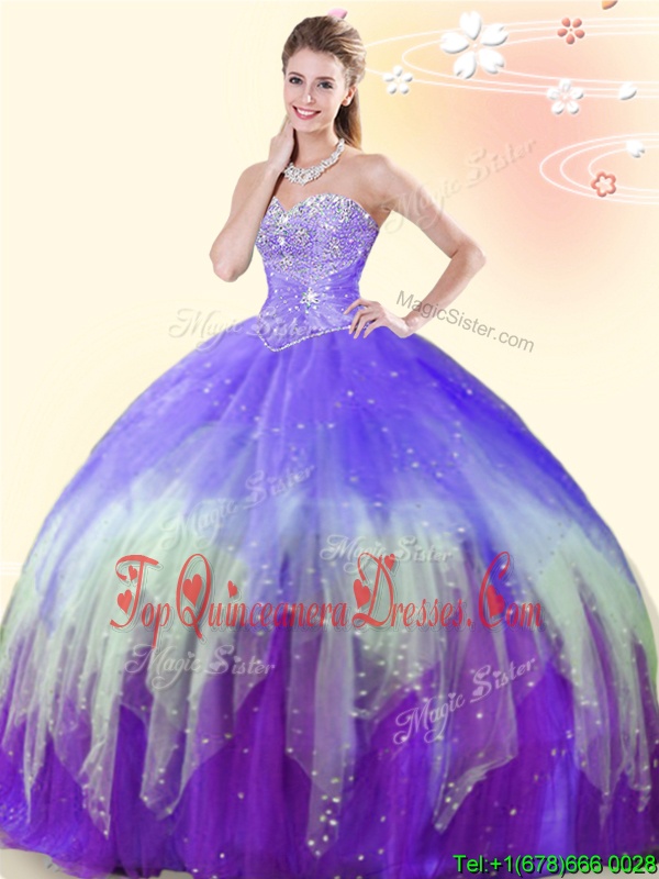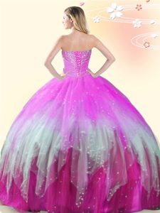 Unique Sleeveless Tulle Floor Length Lace Up Quinceanera Gowns in Multi-color for with Beading