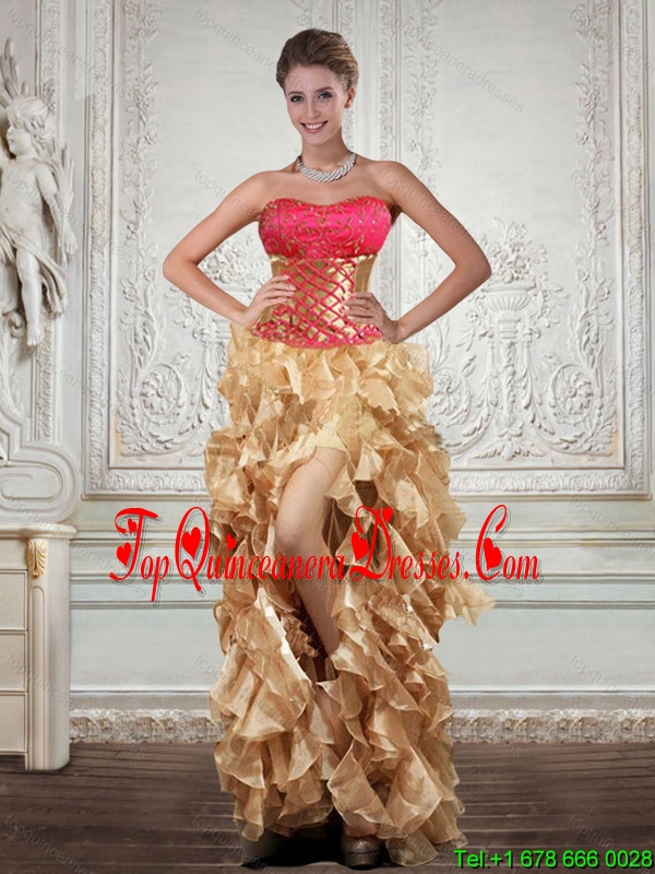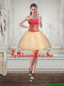 Unique Strapless Multi Color Quinceanera Dama Dresses with Beading and Embroidery