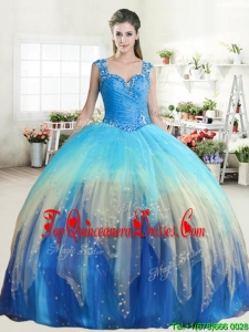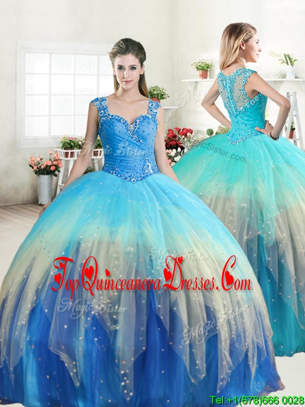 Unique Straps Rainbow Quinceanera Dress with Ruffled Layers and Beading