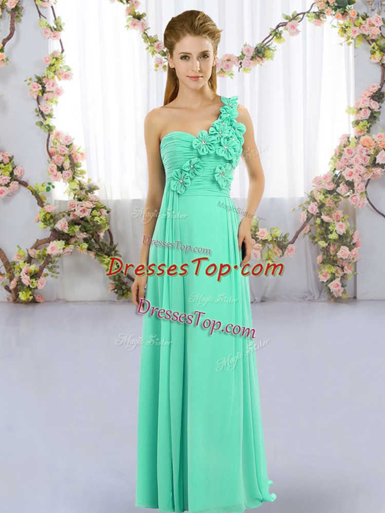 Unique Turquoise One Shoulder Lace Up Hand Made Flower Damas Dress Sleeveless