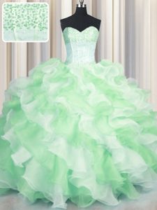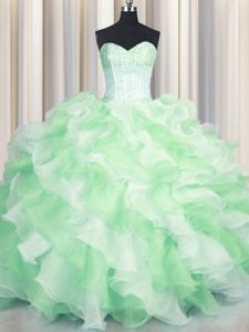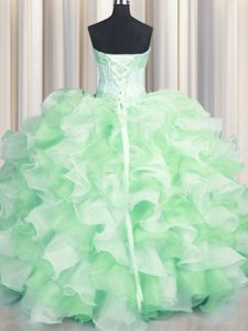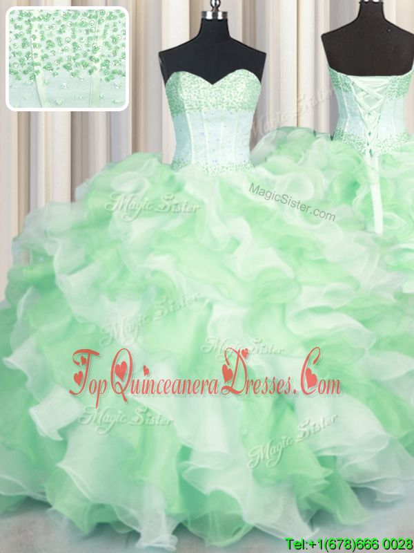 Unique Visible Boning Two Tone Multi-color Lace Up Sweetheart Beading and Ruffles 15th Birthday Dress Organza Sleeveless