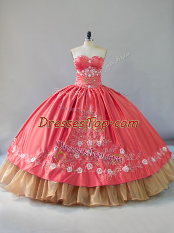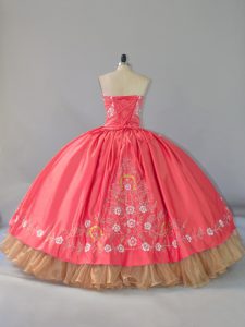 Unique Watermelon Red Sweetheart Neckline Embroidery Quinceanera Gowns Sleeveless Lace Up