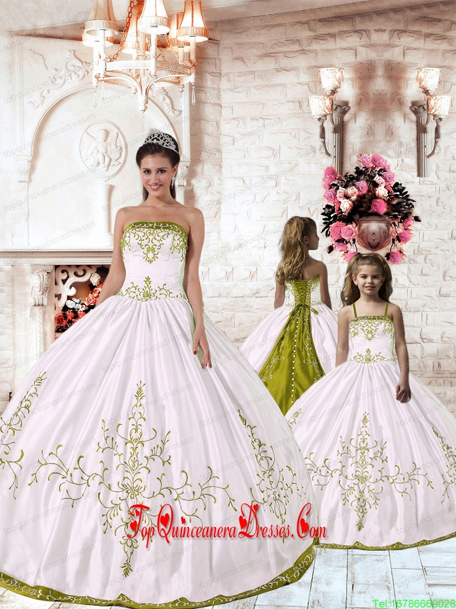 Unique White Princesita Dress with Yellow Green Embroidery for 2015