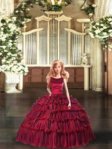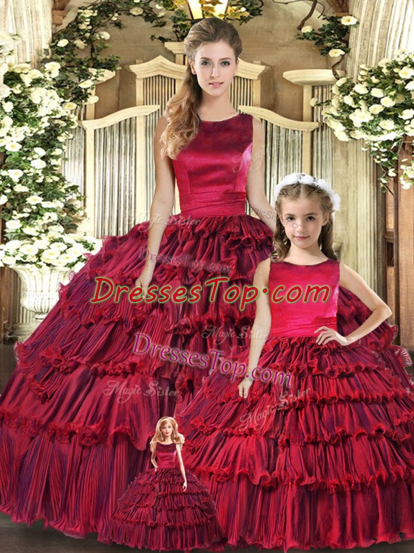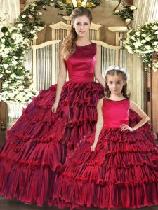 Unique Wine Red Organza Lace Up Scoop Sleeveless Floor Length Quinceanera Dresses Ruffled Layers