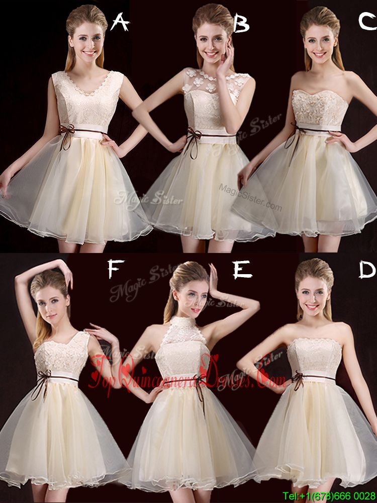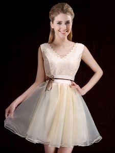 V-neck Sleeveless Lace Up Court Dresses for Sweet 16 Champagne Organza