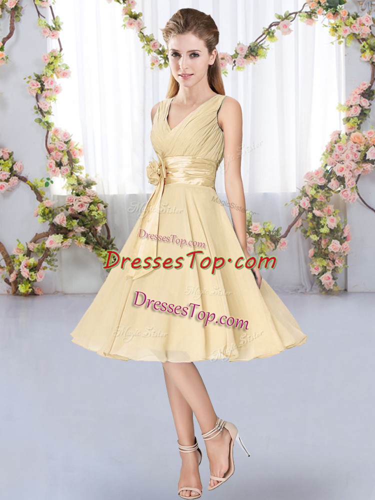 V-neck Sleeveless Lace Up Dama Dress for Quinceanera Champagne Chiffon