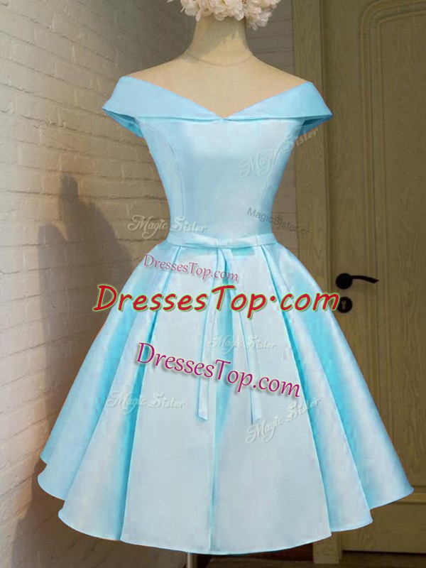 Vintage Aqua Blue Cap Sleeves Belt Knee Length Dama Dress