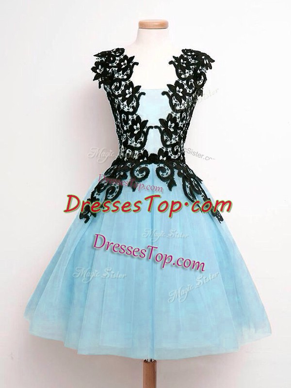 Vintage Aqua Blue Sleeveless Tulle Lace Up Quinceanera Court of Honor Dress for Prom and Party and Wedding Party