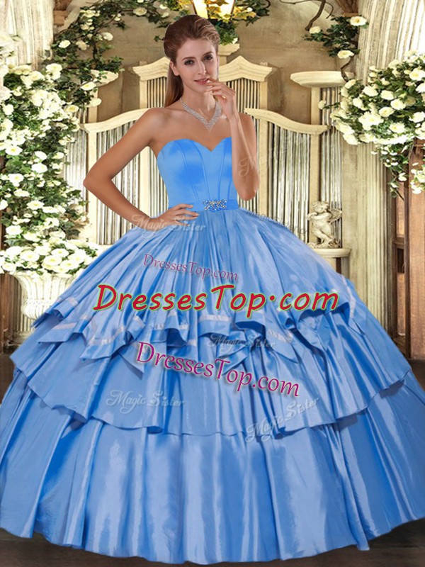Vintage Beading and Ruffled Layers 15th Birthday Dress Baby Blue Lace Up Sleeveless Floor Length