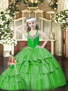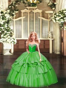 Vintage Beading and Ruffled Layers Sweet 16 Dress Green Lace Up Sleeveless Floor Length