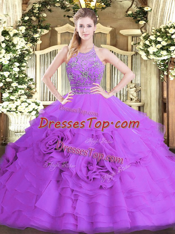 Vintage Floor Length Zipper Quinceanera Dresses Eggplant Purple and In with Beading and Ruffled Layers