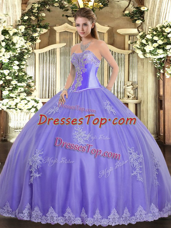 Vintage Lavender Lace Up Vestidos de Quinceanera Beading and Appliques Sleeveless Floor Length