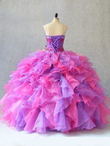 Vintage Multi-color Organza Lace Up Quinceanera Dresses Sleeveless Beading and Ruffles