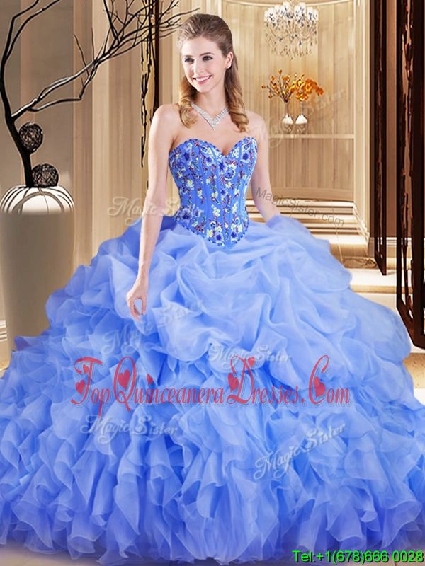 Vintage Pick Ups Brush Train Ball Gowns Quinceanera Gown Lavender Sweetheart Organza Sleeveless Lace Up