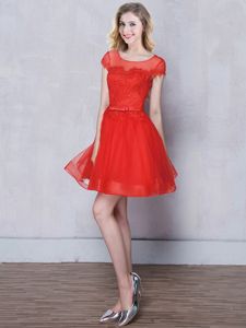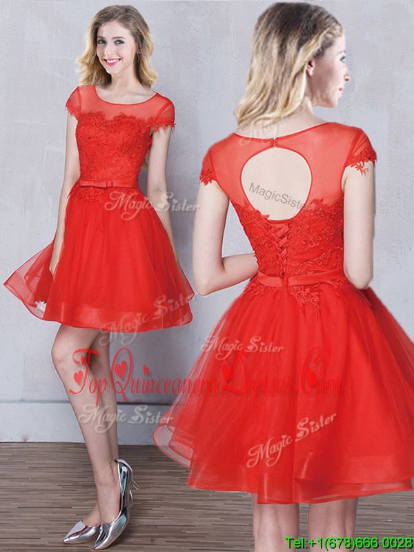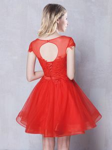 Vintage Scoop Mini Length A-line Short Sleeves Red Quinceanera Court Dresses Lace Up