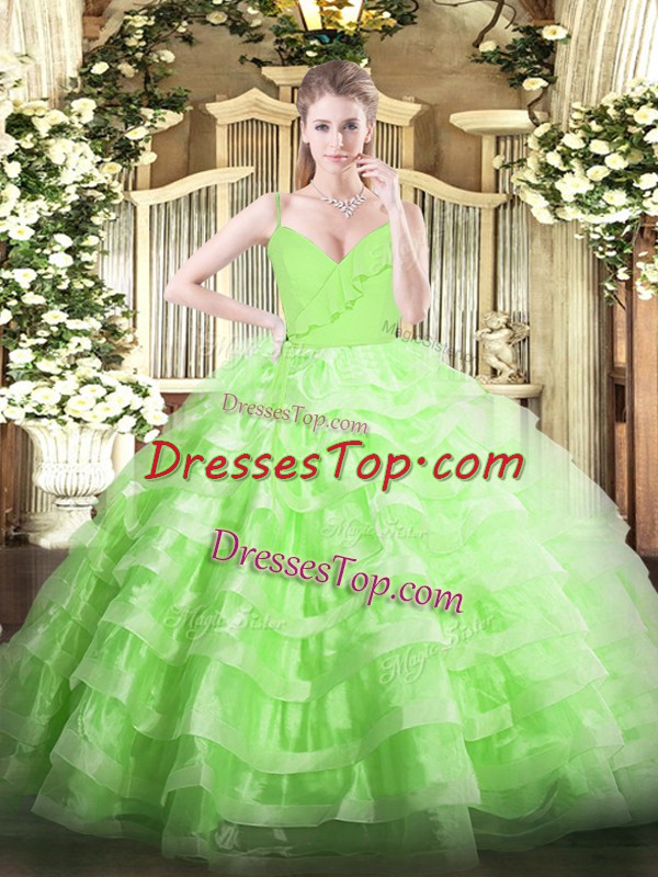 Vintage Spaghetti Straps Sleeveless Quince Ball Gowns Floor Length Ruffled Layers Organza