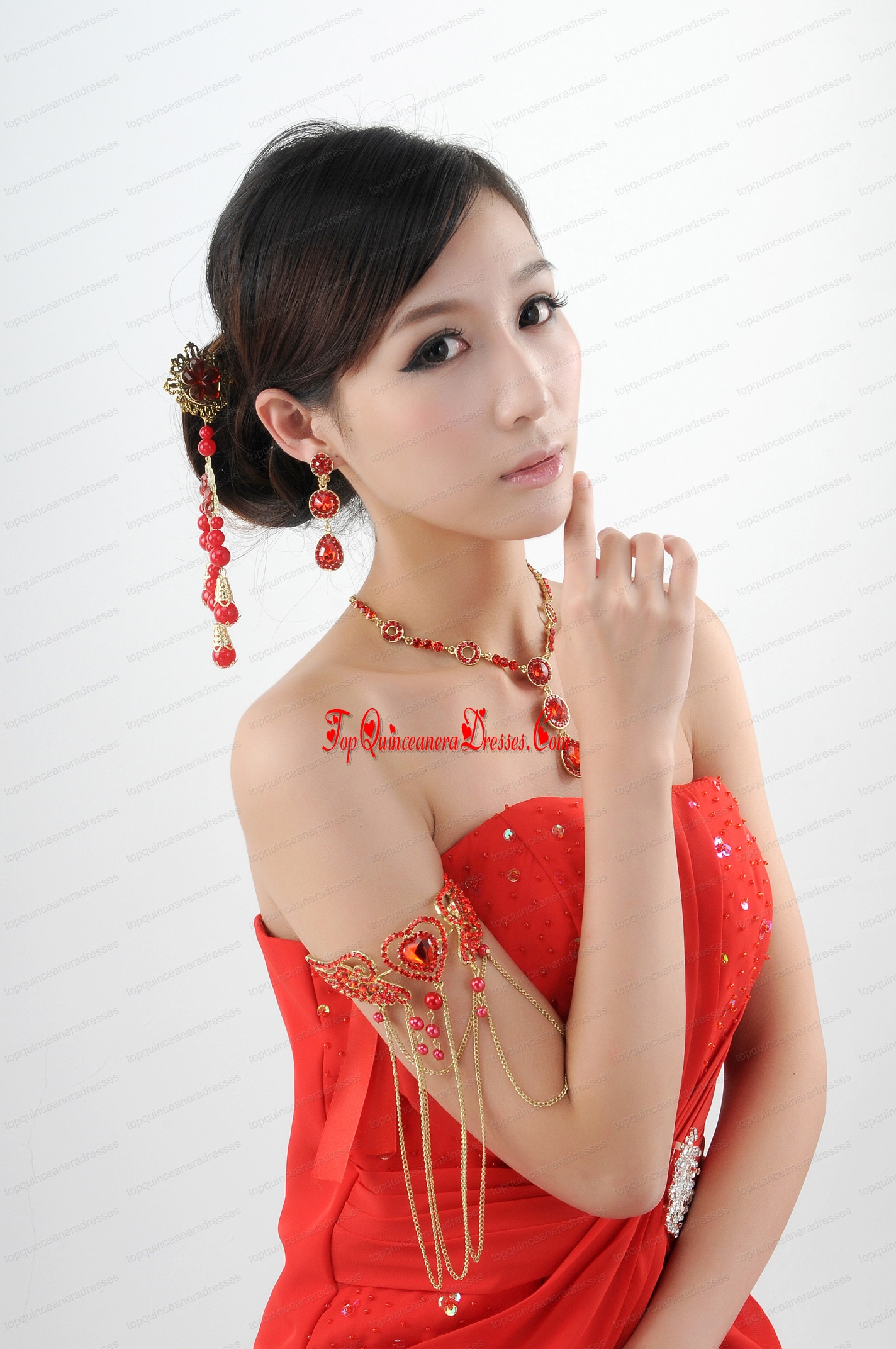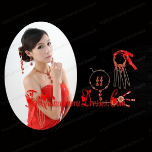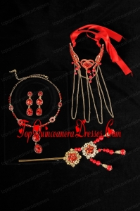 Vintage Style Red Artistic Necklace Bracele And Hair Clasp