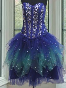 Vintage Three Piece Sleeveless Floor Length Beading and Ruffles Lace Up Quinceanera Dresses with Multi-color