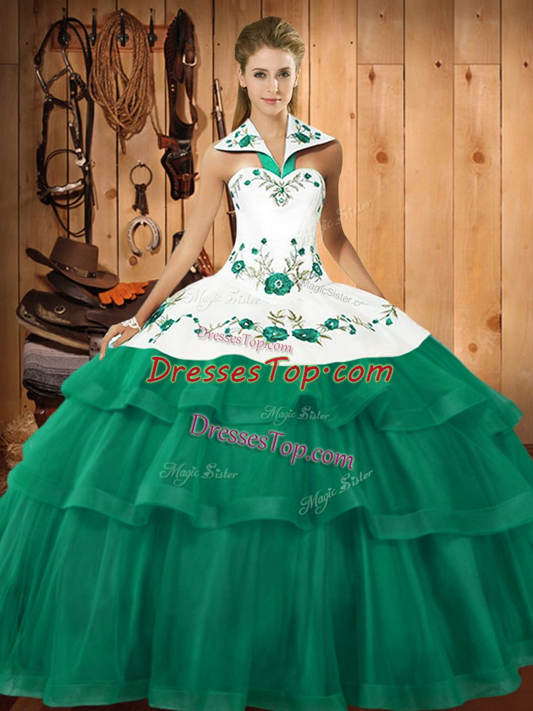Vintage Turquoise Lace Up Sweet 16 Dress Embroidery and Ruffled Layers Sleeveless Sweep Train