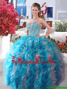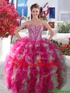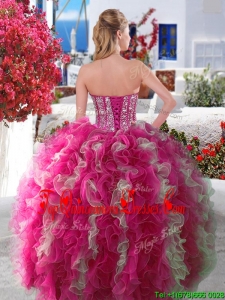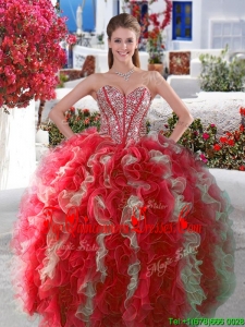 Visible Boning Beaded and Ruffled Quinceanera Gown in Red and White