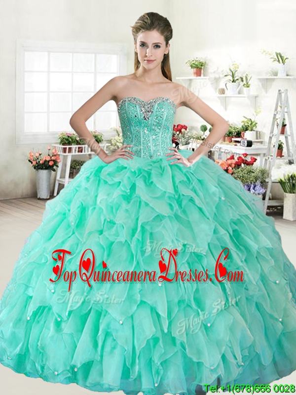 Visible Boning Beaded Bodice and Ruffled Quinceanera Dress in Apple Green