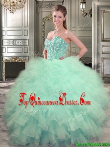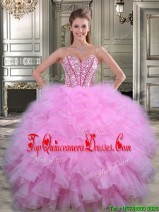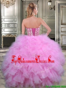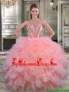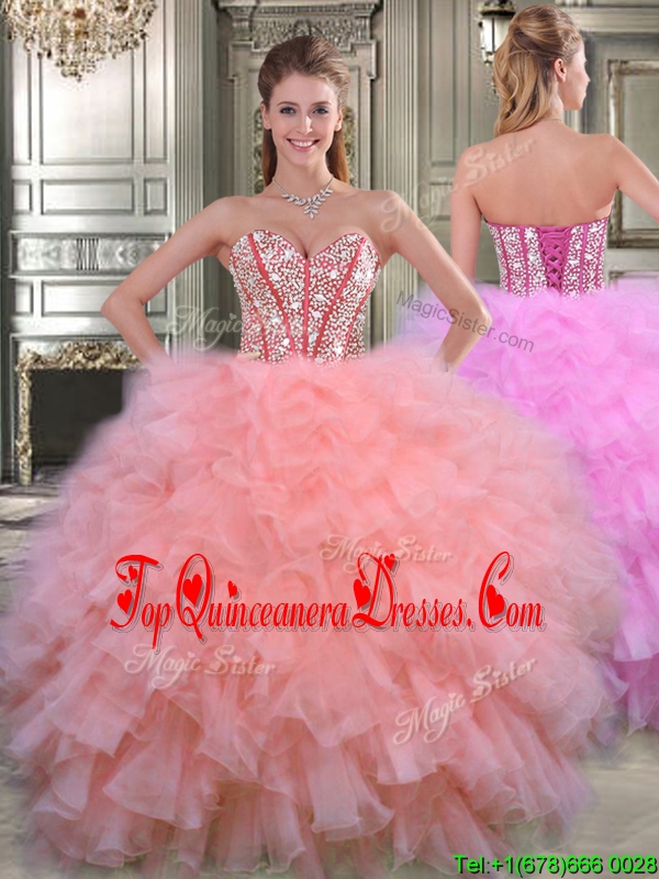Visible Boning Beaded Bodice and Ruffled Quinceanera Dress in Watermelon Red