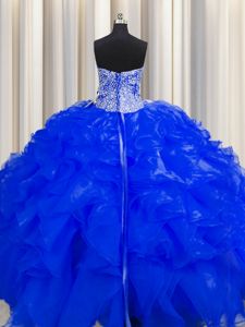 Visible Boning Beaded Bodice Sleeveless Lace Up Floor Length Beading and Ruffles Quinceanera Dresses