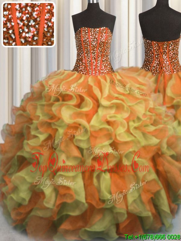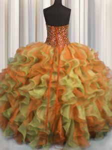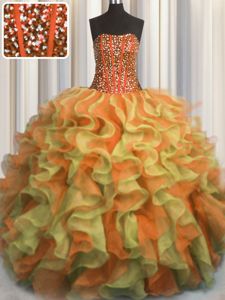 Visible Boning Beaded Bodice Strapless Sleeveless Lace Up Quinceanera Dresses Multi-color Organza