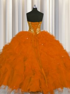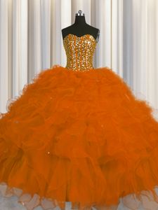 Visible Boning Floor Length Rust Red Sweet 16 Dresses Sweetheart Sleeveless Lace Up
