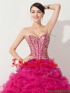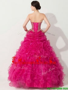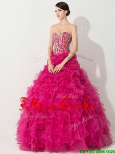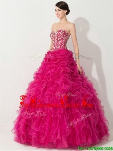 Visible Boning Hot Pink Quinceanera Dresses with Beading and Ruffles