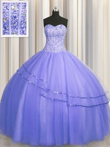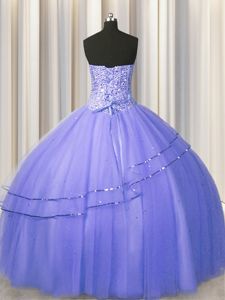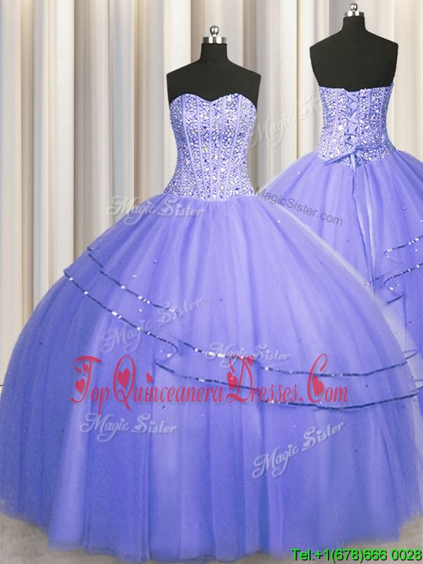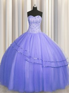 Visible Boning Puffy Skirt Purple 15 Quinceanera Dress Military Ball and Sweet 16 and Quinceanera and For with Beading Sweetheart Sleeveless Lace Up