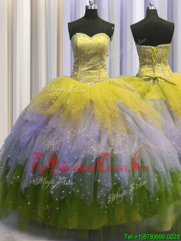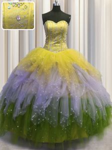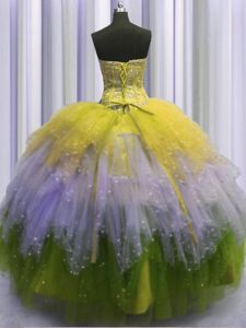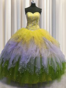 Visible Boning Sleeveless Beading and Ruffles and Sequins Lace Up Quinceanera Dresses