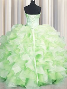 Visible Boning Two Tone Multi-color Organza Lace Up Sweetheart Sleeveless Floor Length Quinceanera Dress Beading and Ruffles