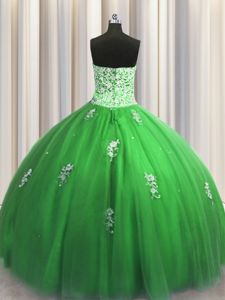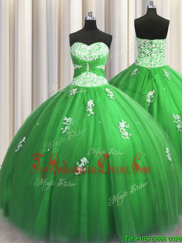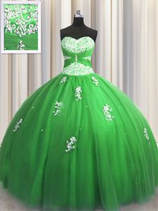 Visible Boning Zipper Up Sleeveless Beading and Ruffles Zipper Quinceanera Gown