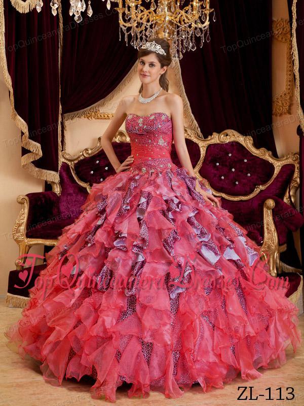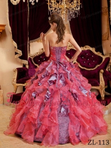Watermelon Ball Gown Sweetheart Floor-length Beading Leopard and Organza Quinceanera Dress