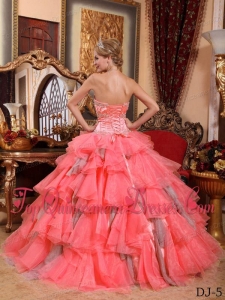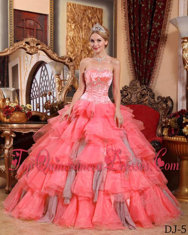 Watermelon Ball Gown Sweetheart Floor-length Organza Beading Vestidos de Quinceanera