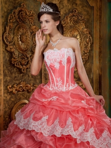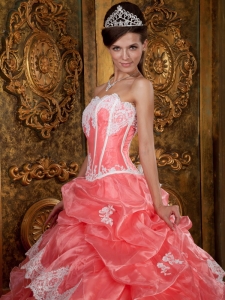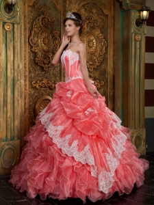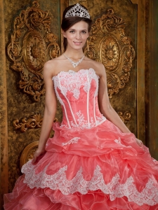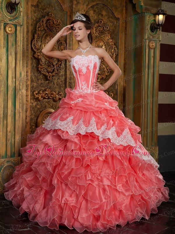 Watermelon Embroidery Ruffle Organza Quinceanera Dress