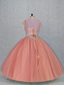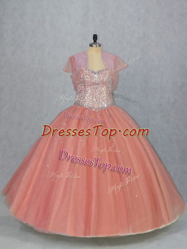 Watermelon Red Sleeveless Floor Length Beading Lace Up 15th Birthday Dress