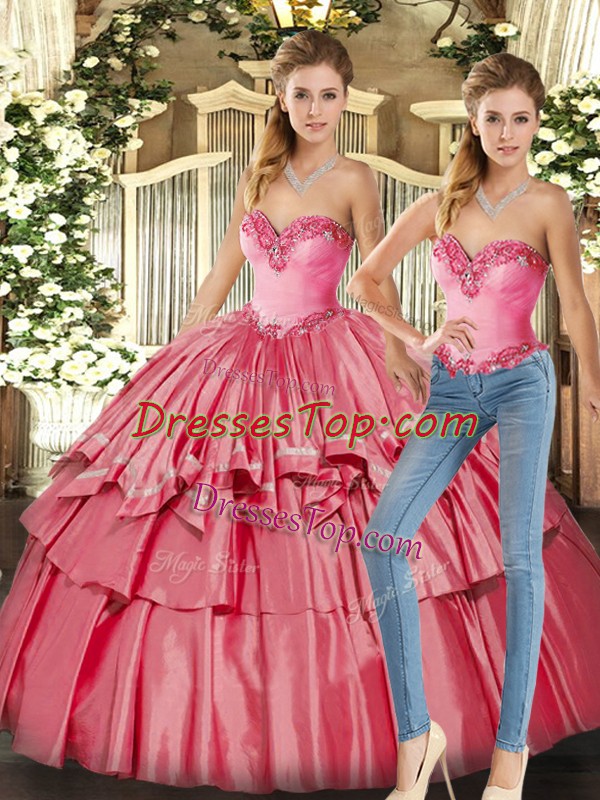 Watermelon Red Sleeveless Organza Lace Up Quinceanera Dress for Military Ball and Sweet 16 and Quinceanera