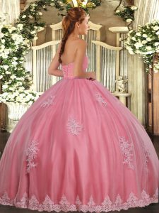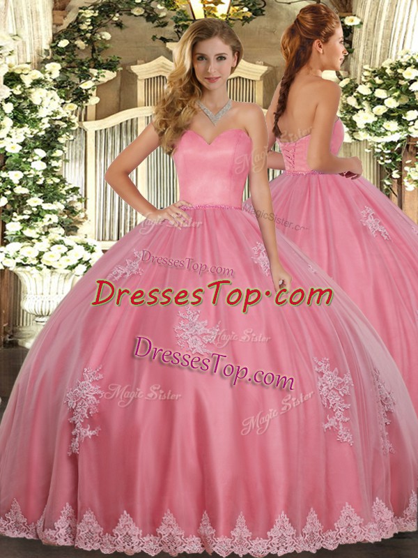 Watermelon Red Sweetheart Lace Up Beading and Appliques Quinceanera Dresses Sleeveless