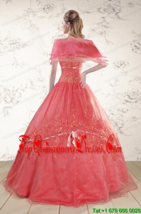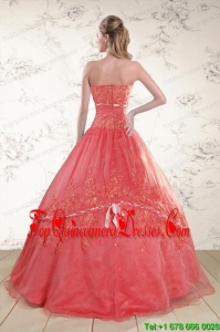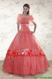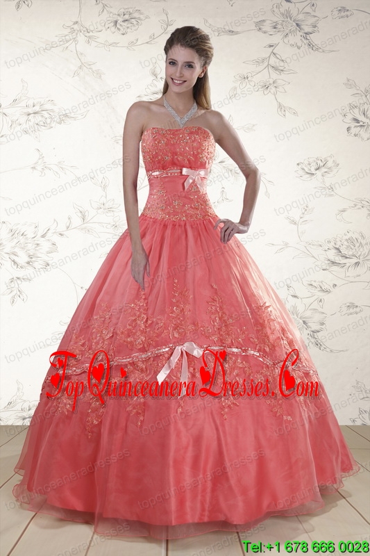 Watermelon Sweetheart Appliques Sweet 15 Dresses for 2015