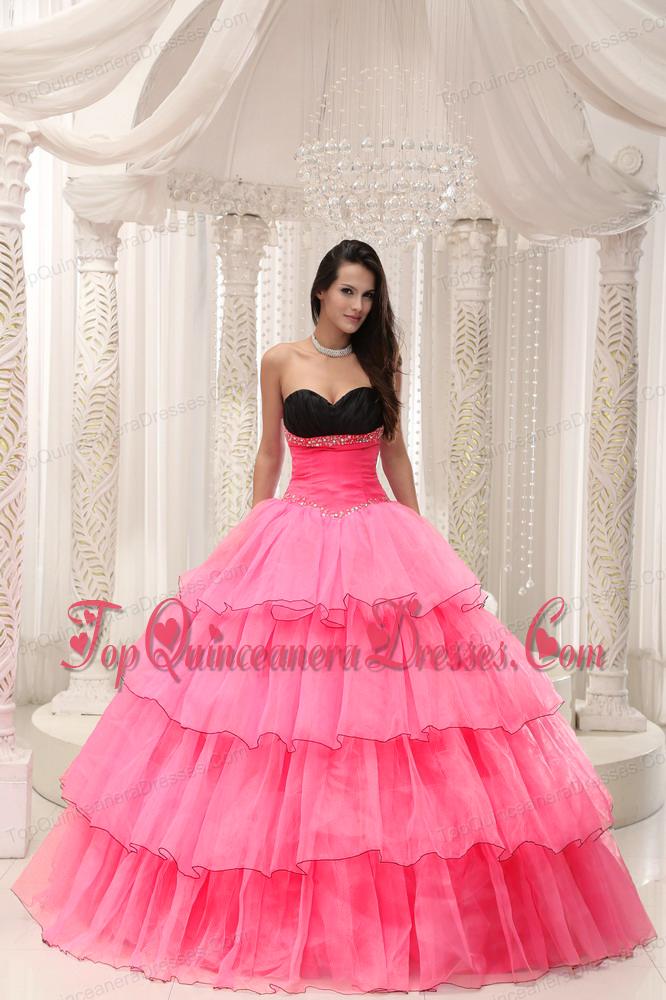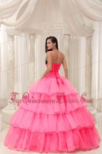 Watermelon Sweetheart Beaded and Layers Ball Gown Discount Quinceanera Dress Taffeta and Organza